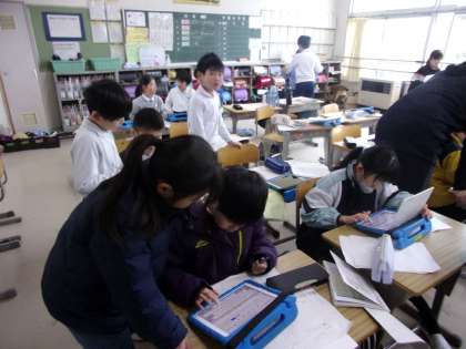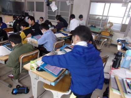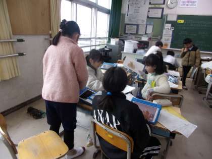 調べたことをまとめて、スピーチします。その原稿を学習用タブレットで書いていました。この単元では、話の組み立てを工夫したり、話し方を工夫したりすることが目標です。