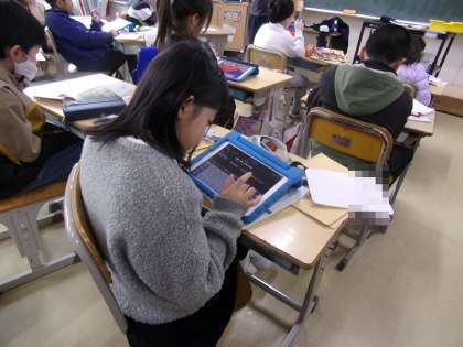 物語を初めて読んで感想を学習用タブレットで書いていました。このお話、ラストはかなりのインパクトがあります。近年の世界情勢を考えると、この主人公のような村が、実際に世界中にいくつもできてしまったのではないか…と思ってしまいます。