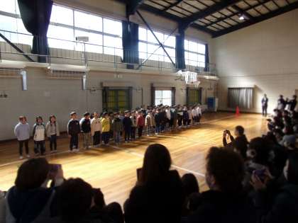 前半と後半に分かれていましたが、いずれも、発表の最後には、校歌を2クラス一緒になって元気よく歌いました。