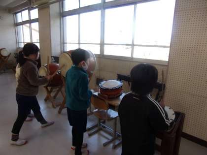 太鼓とりコーダーを使って、おはやしの演奏を練習していました。