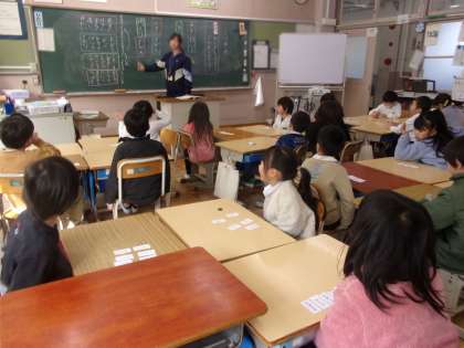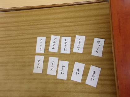 カードを並べて、文を作り、集めた言葉を仲間分けしていました。先週、21日(金)の授業の様子です。