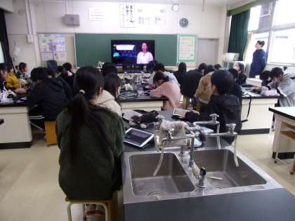 これらは、6年生の様子です。6年生は、1クラスにつき1時間、理科室で行いました。