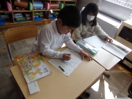 かえるくんが、なぜ、お手紙を書いたのかについて、考えていました。2月27日(木)の学習の様子です。