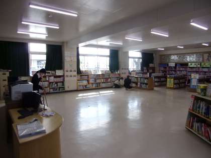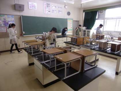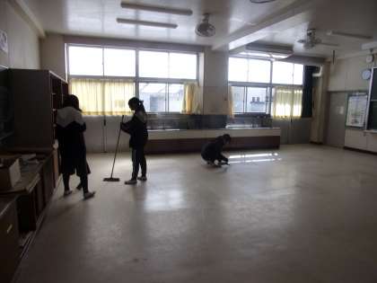 これらは、図書室・第1理科室・図工室での活動の様子です。出せるものは部屋から出して掃除し、ワックスをかけました。