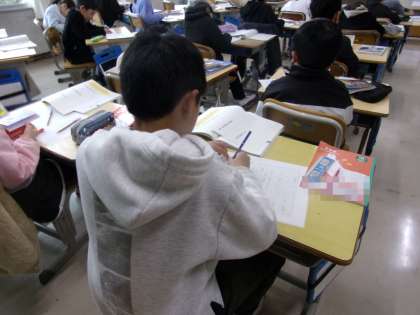 「1年間がんばったこと」をテーマに、原稿用紙を使って、作文を書いていました。