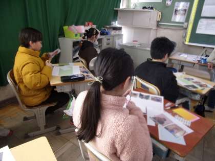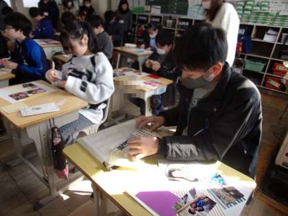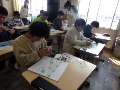 各クラス、講師の先生に教えてただけるのは1時間ずつです。みんな、一生懸命、取り組みました。なお、真ん中の写真に写っている、授業を参観されている方々は、本校学区の民生児童委員さんの方々です。この日、本校で会合があり、わずかな時間ですが、校内の様子を見ていただきました。