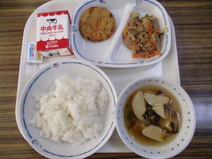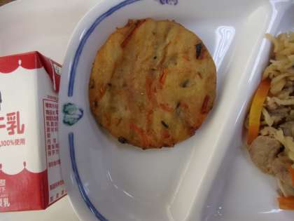 今日の給食には、チヂミが出ました。丸くてかわいらしい感じでした。