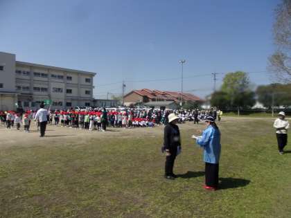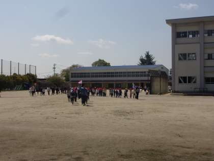 大地震が発生し、その影響で理科室準備室より出火した…という設定で、避難訓練を行いました。みんな、静かに、スムーズに、安全に集まることができました。