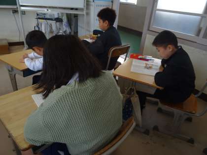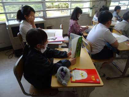 みんなで交代しながら、一文ずつ、物語文を読んでいました。