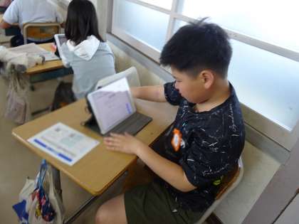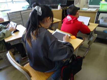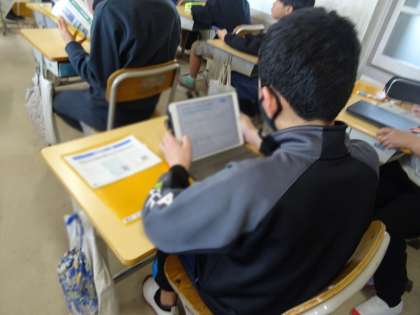 生活や学習の様子について、質問に答えます。学習用タブレットで行いました。