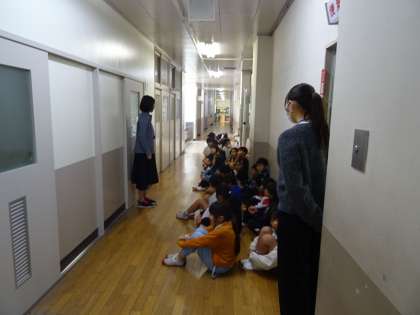 聴力検査の説明を聞いている様子です。聴力検査は、検査を行う学年と行わない学年があります。