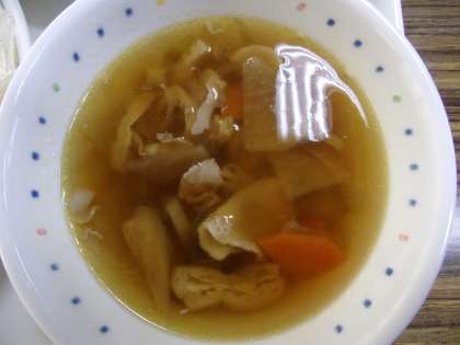 給食は、メインが肉うどんでした。汁の中に白玉うどんを入れて食べました。給食で、このメニューが食べられるって、すごいことだと思います。