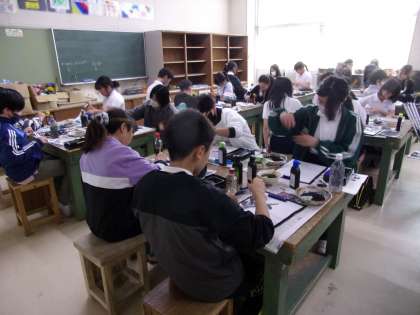 水墨画に挑戦していました。そもそも、筆を使って、1色のみで絵を描くこと自体、初めての経験。まして、毛筆用の筆。苦戦しているようでしたが、みんな、結構楽しそうでした。挑戦することを楽しめるのは、とてもすばらしいことだと思います。