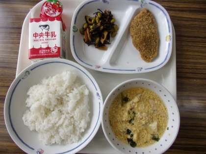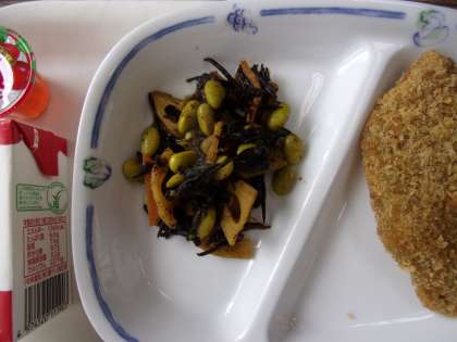 給食「スパイシーひじき」「青じそ入りアジフライ」