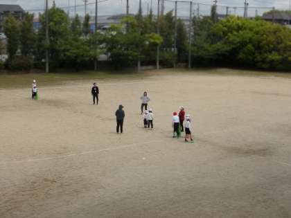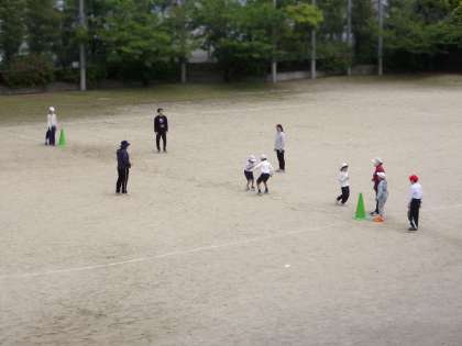 向かい合って走り、あったところで全身を使ってじゃんけんし、勝てば前に進み、負ければ次の人と交代します。…と言葉で説明してもわかりづらいかもしれません。これらの写真を見ながら、ご理解いただければ…と思います。
