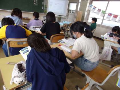 教科書や資料集に掲載されている資料や記述をもとに、考えていました。寿恵野小学校のすぐ近くにも、矢作川が流れていますが…。
