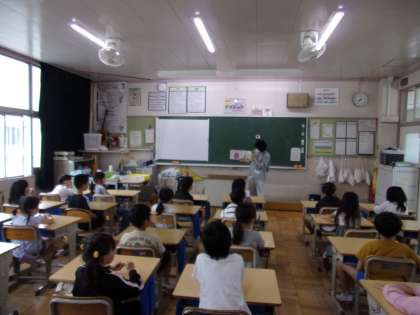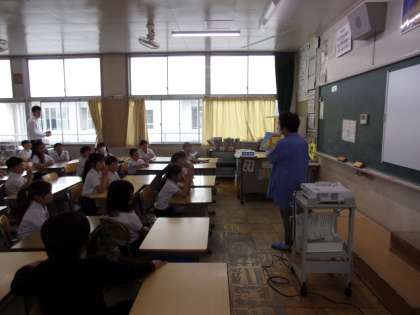 5月14日(水)、プルプルさんによる、第2回目の読み聞かせが行われました。今回は、低学年が対象でしたが、行事の都合で、1年生が4年生に変更となりました。