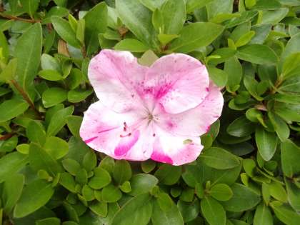ほとんどのツツジは咲き終わっていますが、まだ、この、まだらな色合いのツツジは、咲き始めが遅かったこともあり、今日も、このように鮮やかに咲いています。ただ、数は少ないですが…。来週までもつでしょうか?