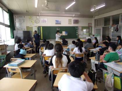 本日、プルプルさんによる、今年度3回目の読み聞かせがありました。今日は、1.5,6年生が対象でした。これらは、6年生の様子です。
