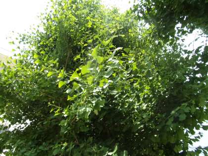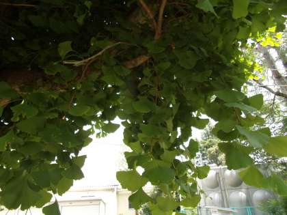 イチョウの葉っぱが青々としています。もちろん、紅葉の季節に真っ黄色のなっていくのも美しいですが、夏場の青々としたイチョウも生命力を感じて、とても美しいと感じます。
