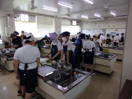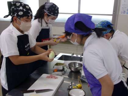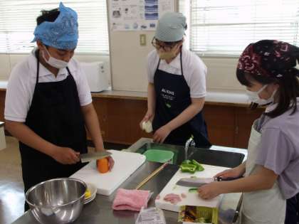 炒める料理を作っていました。みんな、なかなかの手つきで、手際よく作業が進んでいました。20日(火)の授業の様子です。