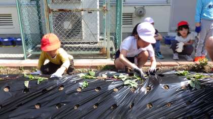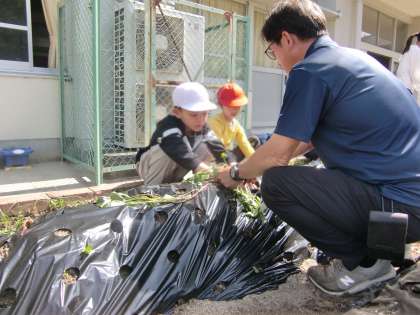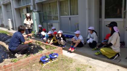 5月20日(火)、大橋園芸さんに、講師に来ていただき、サツマイモの苗を植えました。