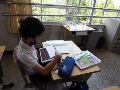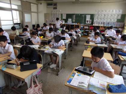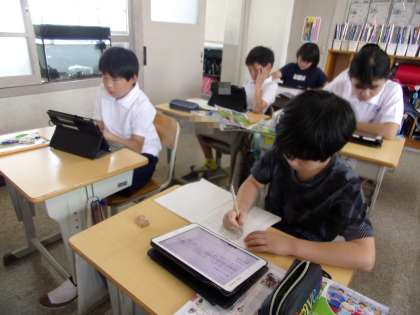 低地の人々の暮らしについて、調べていました。低地とは、この近くだと、濃尾平野の輪中のある地域が該当します。これは、20日(火)の授業の様子です。