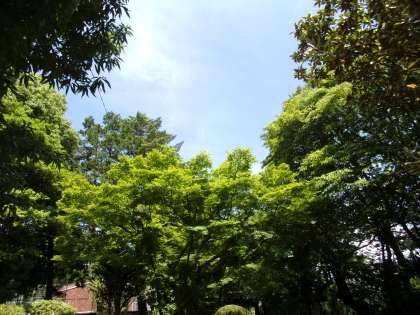 今日は、真っ青な空が広がりました。木々の鮮やかな緑とのコントラストを楽しめました。