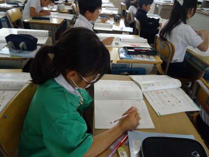 3桁の数と3桁の数をたすと、答えが4桁になるというパターンの計算を練習していました。いくつもの手順を行いますから、どうしても、集中力が必要となります。
