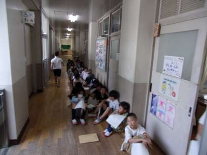本日、眼科検診がありました。2年生は、保健室の近くで、とても上手に静かに待っていました。
