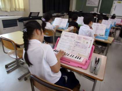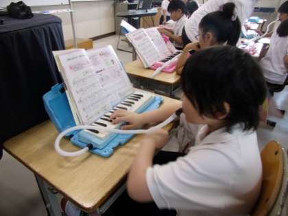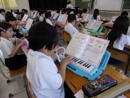 鍵盤ハーモニカの練習をしていました。ちょっと前ですが、先週、5月28日(水)の授業の様子です。