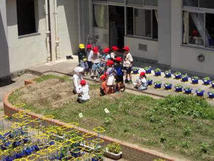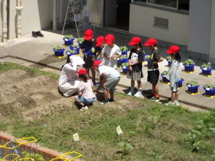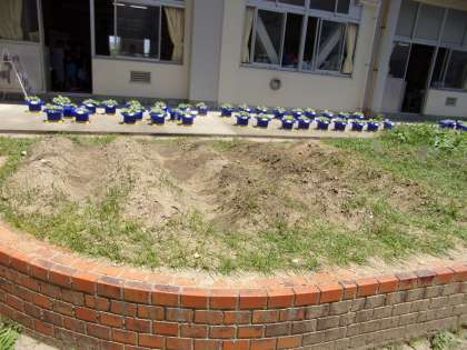 その2日後、とても良い天気となり、3クラスとも種を蒔きました。これらの写真は、2組のものです。