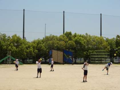 これらは、5日(木)の授業の様子です。この日は、ボールを投げたりキャッチしたりする練習をしていました。