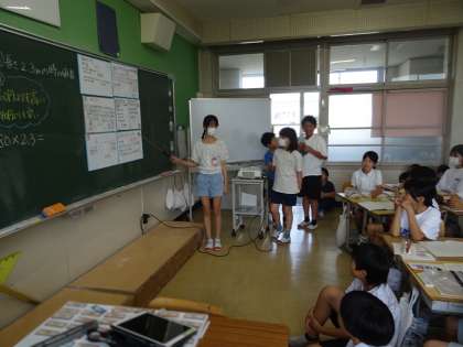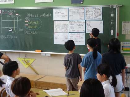 「80×2.3」を、どのように計算するかについて、みんなで話し合っていました。4日(水)の学習の様子です。