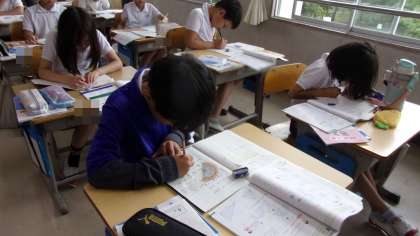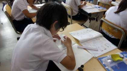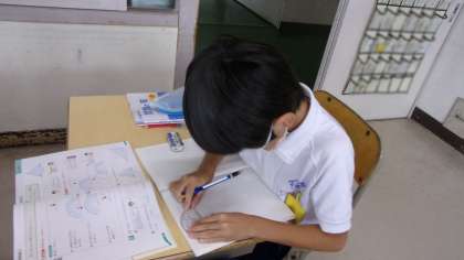 分度器を使って、いろいろな角を描いていました。11日(水)の学習の様子です。