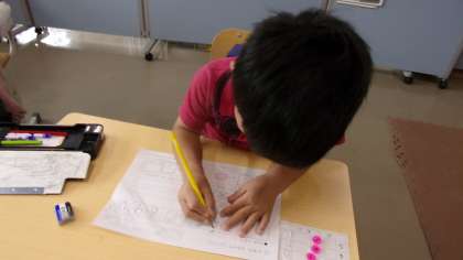 それぞれの課題に取り組んでいました。この日は、ある程度進んだら先生が確認する…というスタイルで行っていました。こうした場合、もし、わからなくなったときは、先生に聞きに行くことになっています。