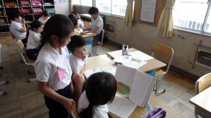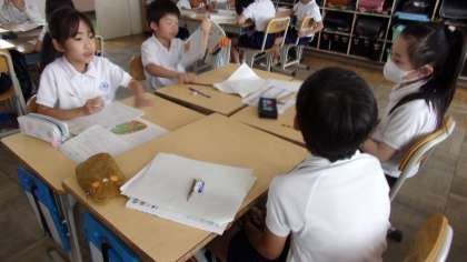 グループで、登場人物それぞれの性格を考えていました、13日(金)の授業の様子です。