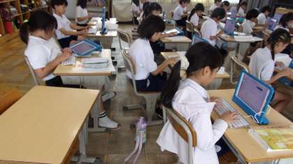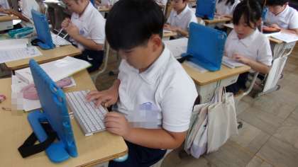 「ことばのきまり」で紹介されていた、タイピング練習のゲームを使って、ローマ字の練習をしていました。