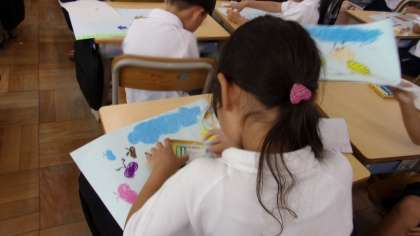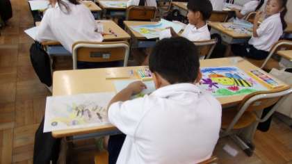 みんな、一生懸命、楽しそうに描いていました。16日(月)の授業の様子です。