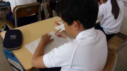 組み立てを工夫し、山場のある物語を書きます。集中して取り組んでいました。