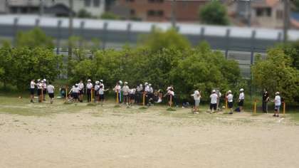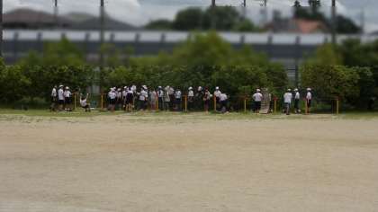 雨が多かったり、熱中症の危険が高まったりする時期ですので、体育では、このように、工夫しながら、やれるときにやれる活動を進めています。