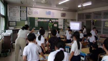 曜日を表す英語の表現に親しんでいました。24日(火)の授業の様子です。