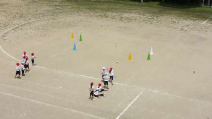 ボールを投げる運動(ゲーム)、いろいろです。これらは、7月1日(火)および3日(木)の授業の様子です。