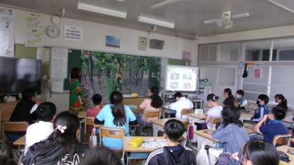 チョコレート(カカオ豆)を通して、食だけでなく、国際協力について考えました。6月27日(金)に、クラスごとに実施しました。