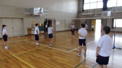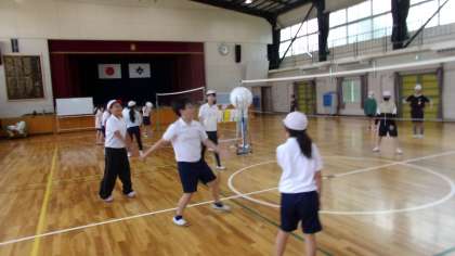 ゲームを楽しんでいました。子どもたちにとっては、初めてのネット型のゲームとなるので、ルールは工夫しています。1日(火)の授業の様子です。