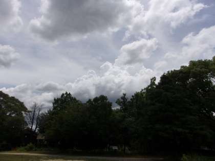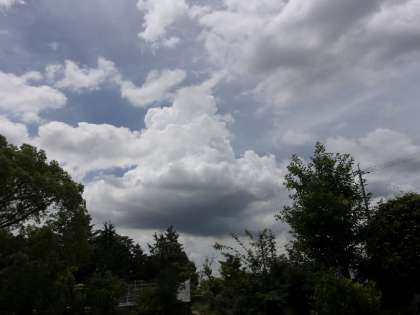 昼前、こんな感じの雲が…。もしかして、これが次第に大きくなり、雷雨になるかも…と思いましたが、その後、降り出すことなく、今(17時過ぎ)に至っています。