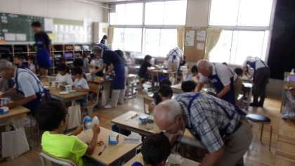 7月3日(木)、ものづくりサポーターの方々に講師としてお越しいただき、2年生が「ものづくり」を行いました。作ったものは、「コトコト車」です。