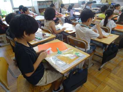 いろいろな折り方や切り方を考えながら、一生懸命、取り組んでいました。10日(木)の学習の様子です。