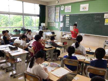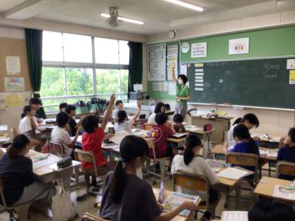 英語での自己紹介に挑戦していました。16日(水)の学習の様子です。