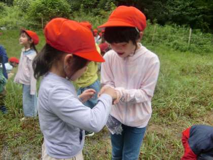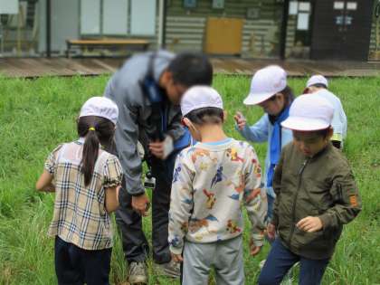五感を使って生き物と触れ合い、生き物の暮らしぶりや生きる知恵、他の生き物とのつながりを知り、生き物の不思議さや生命の大切さに気付くことを目的に、15日(月)と16日(火)に分かれて行いました。